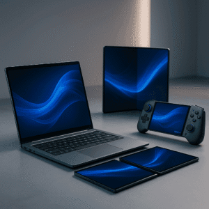 इस विंडोज़ गेमिंग हैंडहेल्ड में एक स्क्रीन है जो आधी मुड़ती है