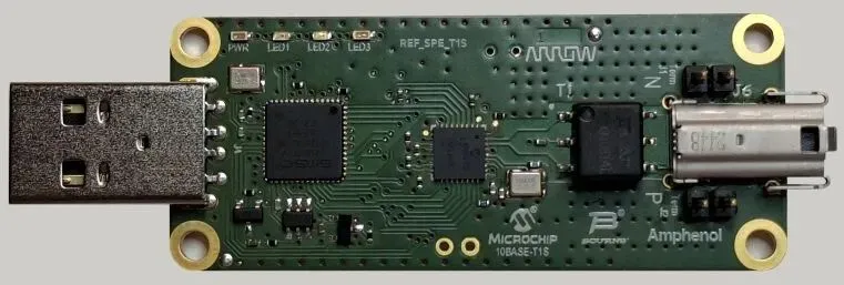 के आसपास निर्मित माइक्रोचिप का LAN8670 10BASE-T1S PHY और आईईसी 63171-6 संगत एम्फेनॉल का एसपीई कनेक्टर, यह डिज़ाइन दर्शाता है कि बॉर्न्स ने आइसोलेशन ट्रांसफार्मर और कॉमन-मोड चोक (सीएमसी) मैग्नेटिक्स (मॉडल) को कैसे एकीकृत किया SM91081AL) भौतिक स्तर पर महत्वपूर्ण भूमिका निभाते हैं।