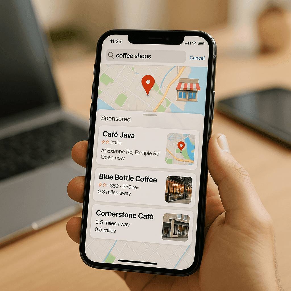 गूगल ने साबित कर दिया है कि मॉडल बड़े पैमाने पर काम करता है। स्थानीय खोज विज्ञापन खोज दिग्गज के लिए एक बड़ा व्यवसाय बन गया है, जिससे रेस्तरां, खुदरा विक्रेताओं और सेवा व्यवसायों को प्रमुख प्लेसमेंट के लिए बोली लगाने की इजाजत मिलती है जब संभावित ग्राहक सक्रिय रूप से खोज रहे होते हैं। दुनिया भर में एक अरब से अधिक iPhone उपयोगकर्ताओं के साथ, Apple मैप्स तुलनीय पहुंच प्रदान करता है, विशेष रूप से अमेरिका में जहां यह उन iOS उपयोगकर्ताओं के बीच महत्वपूर्ण बाजार हिस्सेदारी रखता है जो मूल ऐप पर डिफॉल्ट करते हैं।
