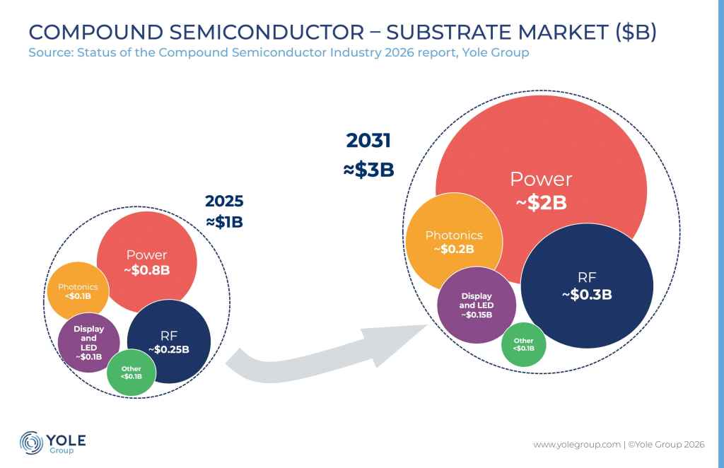 कुछ खंडों में अल्पकालिक मूल्य निर्धारण दबाव के बावजूद, विद्युतीकरण, एआई बुनियादी ढांचे का विस्तार और अगली पीढ़ी की कनेक्टिविटी SiC, GaN, GaAs और InP सहित मिश्रित अर्धचालक सामग्रियों की दीर्घकालिक मांग को मजबूत कर रही है।
