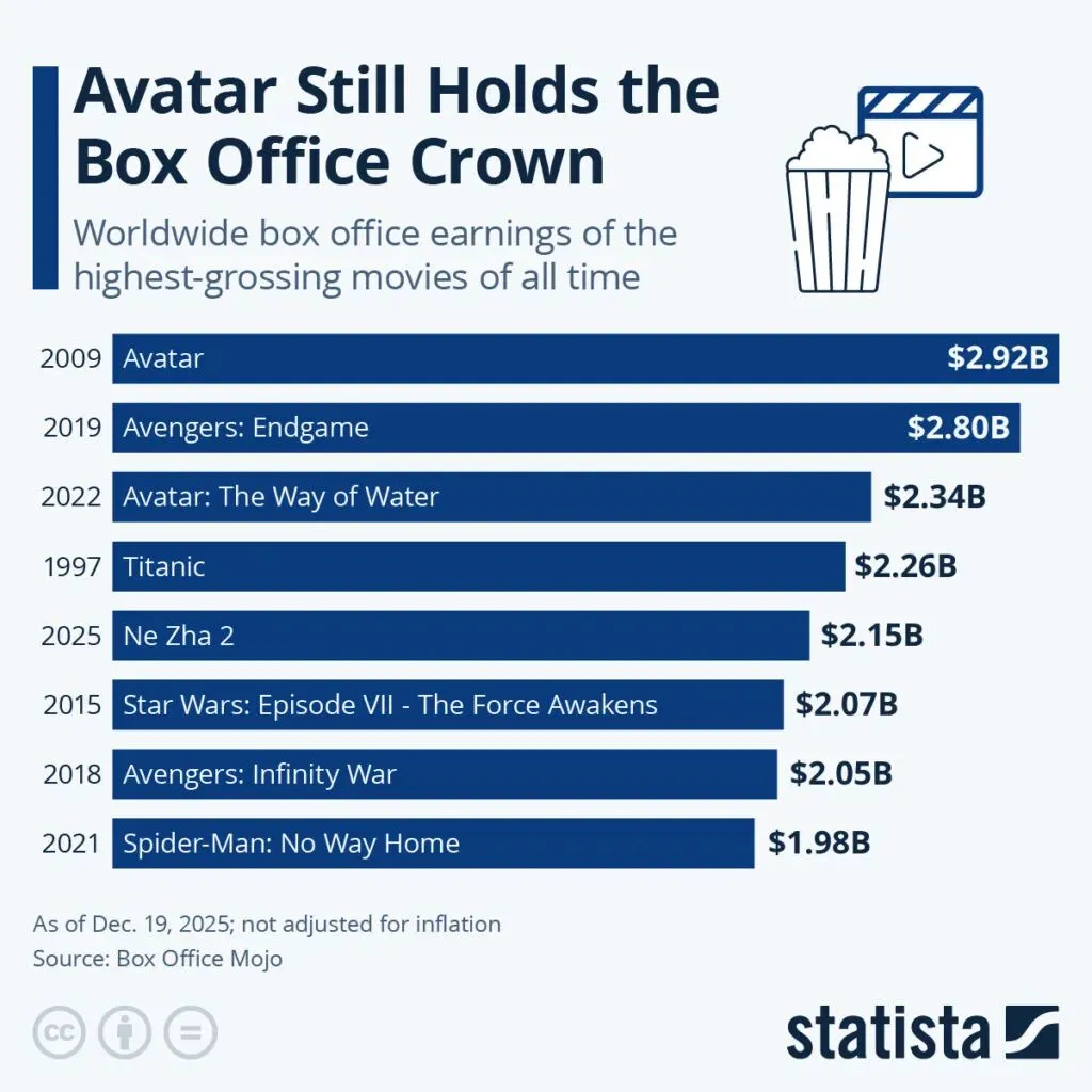 2009 में रिलीज़ हुई मूल “अवतार” ने विश्व स्तर पर बॉक्स ऑफिस पर अनुमानित $2.92 बिलियन की कमाई की, जिससे यह $2.8 बिलियन के साथ “एवेंजर्स: एंडगेम” से आगे अब तक की सबसे अधिक कमाई करने वाली फिल्म बन गई। बॉक्स ऑफिस मोजो.