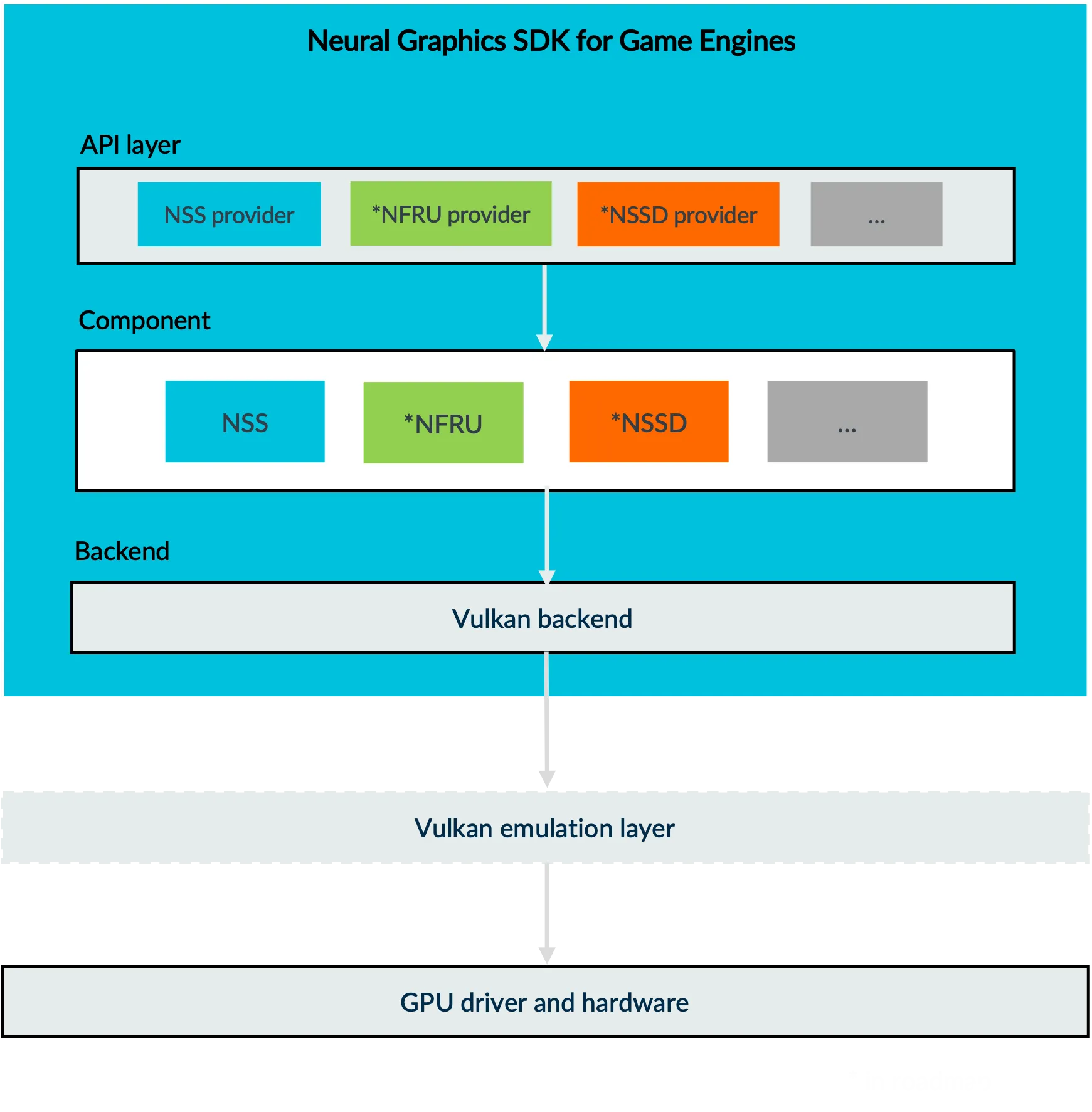 आर्म ने गेम इंजन के लिए अपना न्यूरल ग्राफिक्स एसडीके और अनरियल इंजन 5.4 (यूई5.4) के लिए न्यूरल सुपर सैंपलिंग (एनएसएस) प्लगइन पेश किया है। एसडीके एक ओपन-सोर्स, इंजन-अज्ञेयवादी लाइब्रेरी है। यह आर्म न्यूरल ग्राफ़िक्स डेवलपमेंट किट का हिस्सा है। एसडीके मोबाइल गेमिंग में एआई-संचालित ग्राफिक्स को सक्षम करने के लिए डेवलपर्स को आर्म न्यूरल ग्राफिक्स प्रौद्योगिकियों को उनके पसंदीदा गेम इंजन, इन-हाउस या अनुकूलित में एकीकृत करने में मदद करता है।