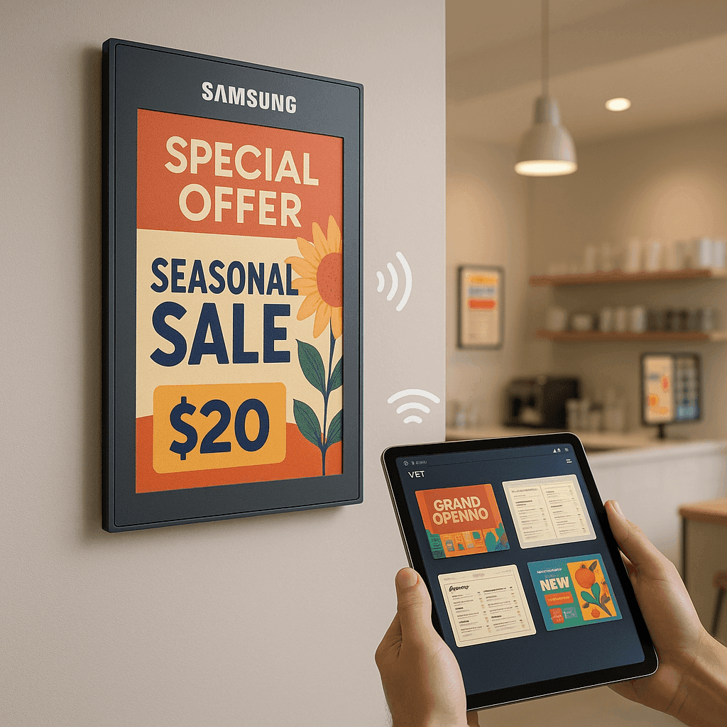 SAMSUNG बस खुदरा प्रबंधकों को पोस्टर प्रिंटिंग ट्रेडमिल से बाहर निकलने का रास्ता दे दिया। कंपनी का नया कलर ई-पेपर लाइनअप व्यवसायों के इन-स्टोर साइनेज को संभालने के तरीके को बदल देता है, ई-रीडर की तरह बिजली की खपत करने वाले दूरस्थ रूप से अपडेट करने योग्य डिस्प्ले के लिए अंतहीन प्रिंट रन की अदला-बदली करता है।