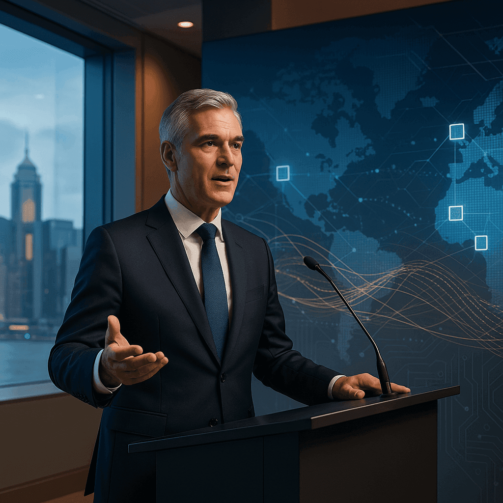 स्टैंडर्ड चार्टर्ड के सीईओ बिल विंटर्स ने हांगकांग फिनटेक वीक को बताते हुए एक प्रमुख बैंकिंग कार्यकारी की सबसे साहसिक ब्लॉकचेन भविष्यवाणियों में से एक बनाई है कि लगभग सभी वैश्विक लेनदेन अंततः डिजिटल लेजर पर तय होंगे। यह कथन संकेत देता है कि पारंपरिक बैंकिंग कितनी तेजी से उस चीज़ को अपना रही है जिसे विंटर्स “वित्तीय प्रणाली की पूर्ण रीवायरिंग” कहते हैं – और यह अधिकांश लोगों के अनुमान से कहीं अधिक तेजी से हो रहा है।