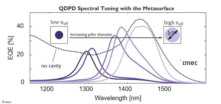 इमेक अपनी 300 मिमी सीएमओएस पायलट लाइन पर विकसित मेटासर्फेस के साथ कोलाइडल क्वांटम डॉट फोटोडायोड (क्यूडीपीडी) को एकीकृत करके इस चुनौती का समाधान करता है।