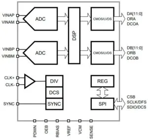 कंपनी के अनुसार, “डीएसपी का एकीकरण कई कार्यों को ऑन-चिप लाता है, जिसमें डिकिमेशन, डिजिटल डाउन-कनवर्जन, इंटरलीविंग और आईक्यू-बेमेल सुधार ...